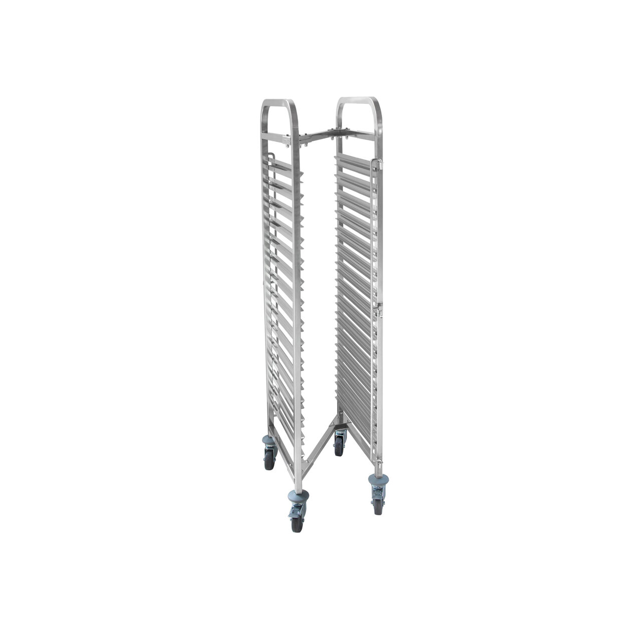 Carucuior debarasare tavi, cpacitate 15 tavi cu dimnesiunile de GN 1/1 (530x325 mm) si spatiu intre niveluri 80 mm. sistem de anlocare tavi in ambele parti.
