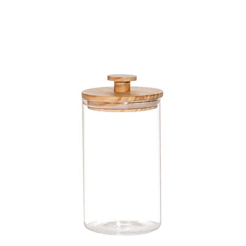 Recipient din sticla cu capac din lemn, diametru 105mm, inaltime 195mm