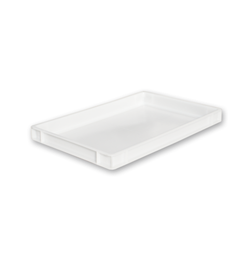 Cutie pentru aluat pizza, capacitate 9 litri, material HDPE polietilena de inalta densitate, culoare alba, dimensiuni interne 560x360x50mm, dimensiuni 600x400x55mmSpecificatii