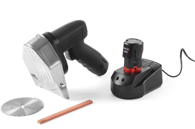 Pentru uz profesional indicat pentru taiere kebab in conditii profesionale Lama din Otel inoxidabil AISI 304 2 lame incluse - 1 lama neteda si 1 lama striata Diametru lama: 100 mm Capacitate: pana la 60 kg/h. Grosime taiere reglabila, de la 0 mm pana la 8 mm. Protectia lama din Otel inoxidabil AISI 304 ofera siguranta in manevrare. Manerul si carcasa motorului din material anti-alunecare.