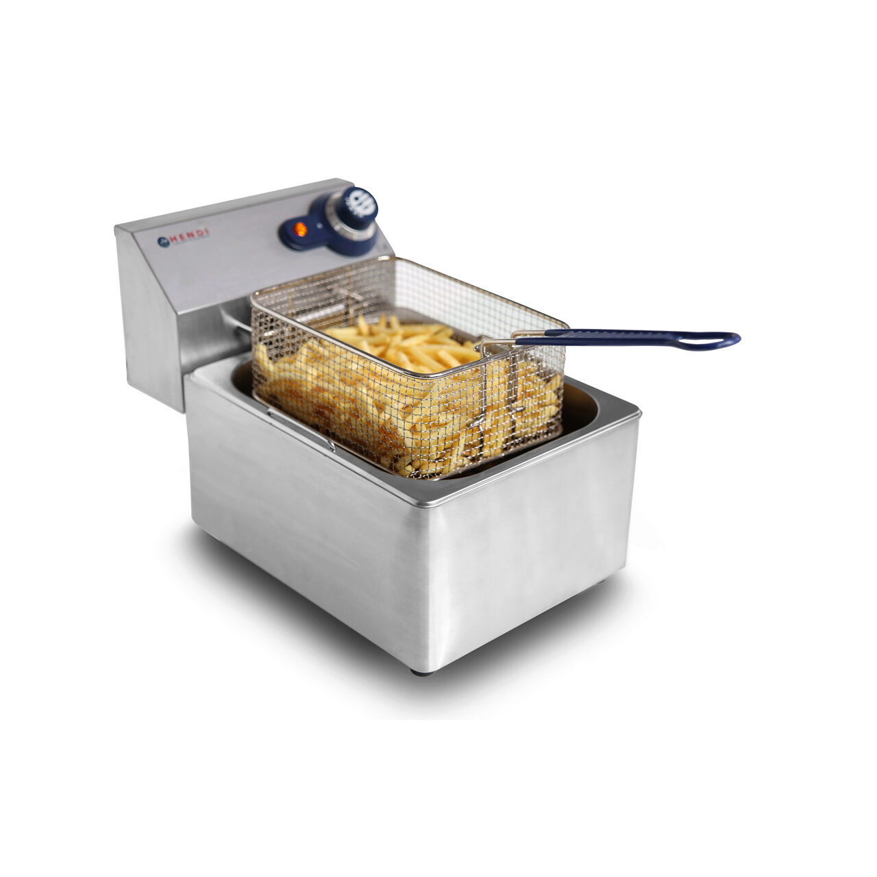 Friteuza electrica profesionala, Hendi Blue Line, 8 litri, 3500W, termostat reglabil 0-190 gr C, corp inox, 265x430x(H)345 mm