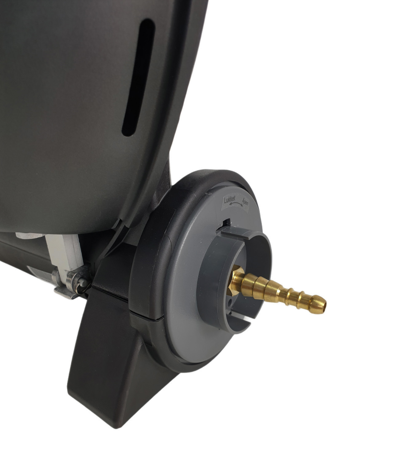 Este un gratar pe gaz, iar sursa de gaz poate fi orice butelie clasica din metal sau compozit din sticla(propan, butan, GPL). Arzatorul in forma “D” al O-grill-ului va genera temperatura intensa si eficienta. Conectarea sursei de gaz la gratar se va face prin simpla atasare a furtunului cu ceas la stuter (cu diametrul de 10 mm sau 15 mm; compatibil cu ambele variante).
