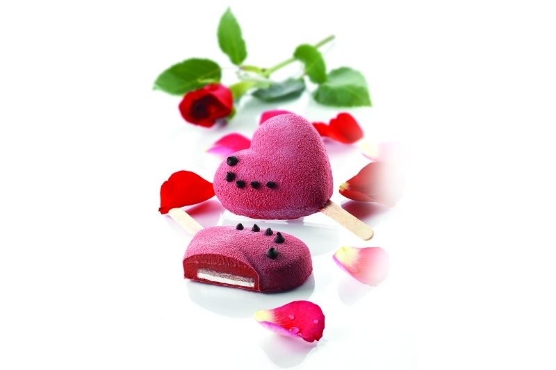 Set 2 forme inima pentru inghetata, din silicon, dimensiune forma inghetata: 91x85x23h mm, capacitate forma inghetata 96ml, se utilizeaza la temperaturi cuprinse intre -60°C si +230°C, pot fi spalate in masina de spalat vase, include 50 bete din lemn pentru inghetata.
