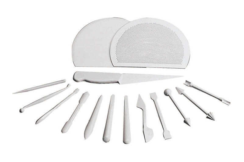 Trusa 15 piese pentru prelucrare martipan,din plastic, de culoare albaSpecificatii