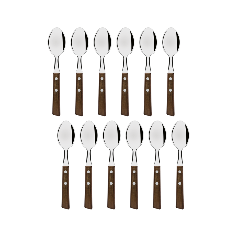 Set 12 lingurite ceai gama Tradicional, fabricate din inox de foarte buna calitate, isi mentine stralucirea dupa o utilizare indelungata, maner din lemn natural de Ipe, solid, rezistent la socuri, lungime totala 151 mm, ambalat in blister