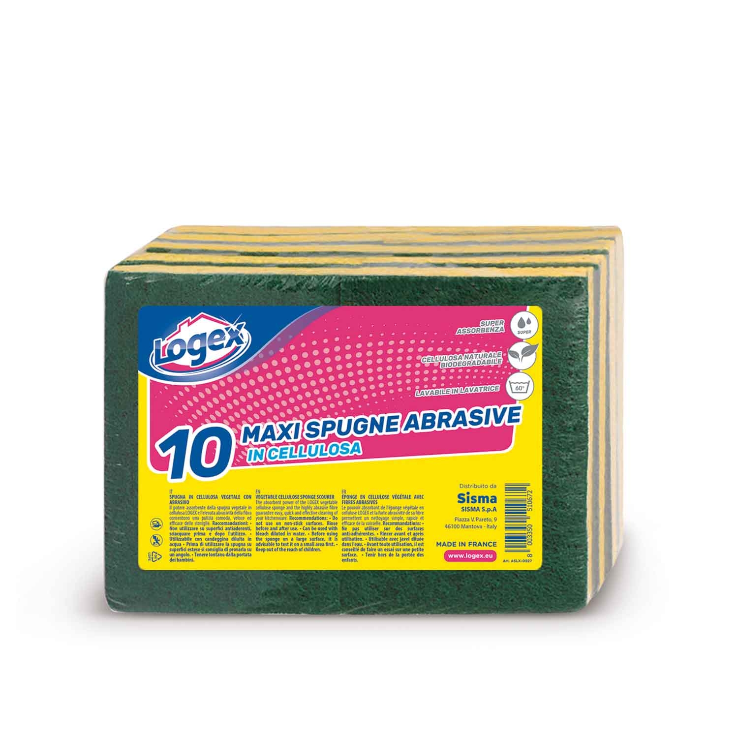 Set 10 bureti abrazivi Logex, 130x90x20mm, fabricati din celuloza naturala biodegradabila