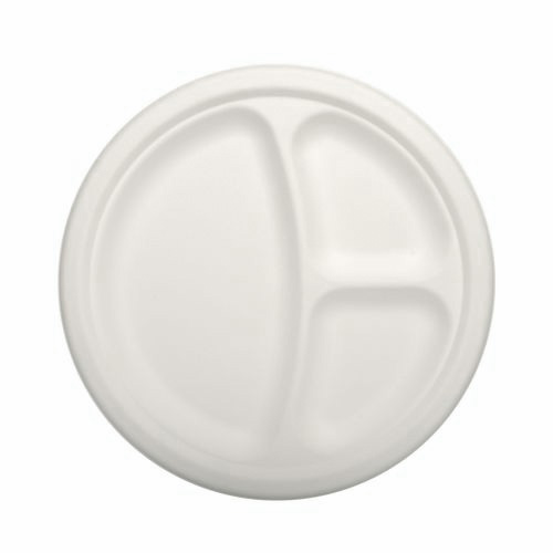 Set 50 farfurii intinse, diametru 230mm, 3 compartimente, culoare alba, fabricate din trestie de zahar, rezistente la maxim 100 grade CelsiusPe lângă farfuriile și bolurile din fibra de carton, PAPSTAR vinde și produse fabricate din trestie de zahăr. Trestia de zahar este utilizată pentru producția de farfurii și boluri datorită conținutului ridicat de celuloză care rămâne ca produs secundar după presarea si extragerea siropului de zahar. Trestia de zahar este un material biodegradabil si usor de reciclat.