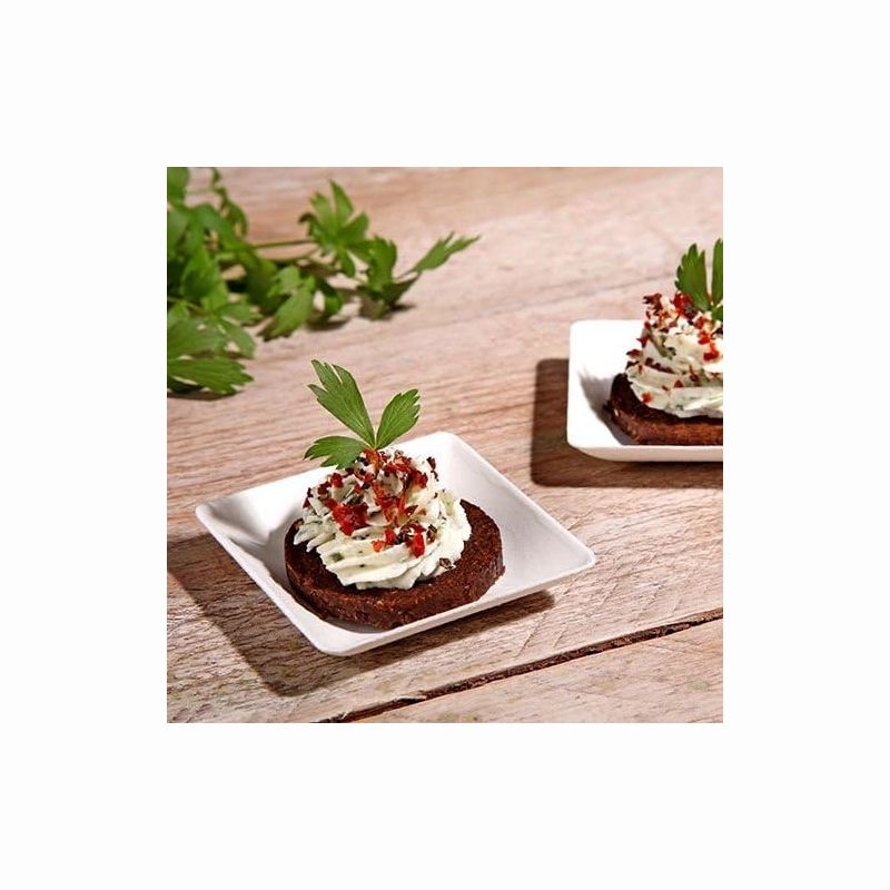 Set 50 Fingerfood, Farfurii din trestie de zaharm patratam cimensiune 65 mm x 65 mm, culoare albSpecificatii