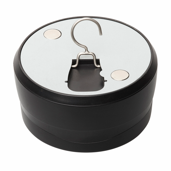 Un carlig metalic pliabil sau patru magneti interni si un disc metalic va pot ajuta sa-l agatati aproape oriunde si in orice tip de bivvy.