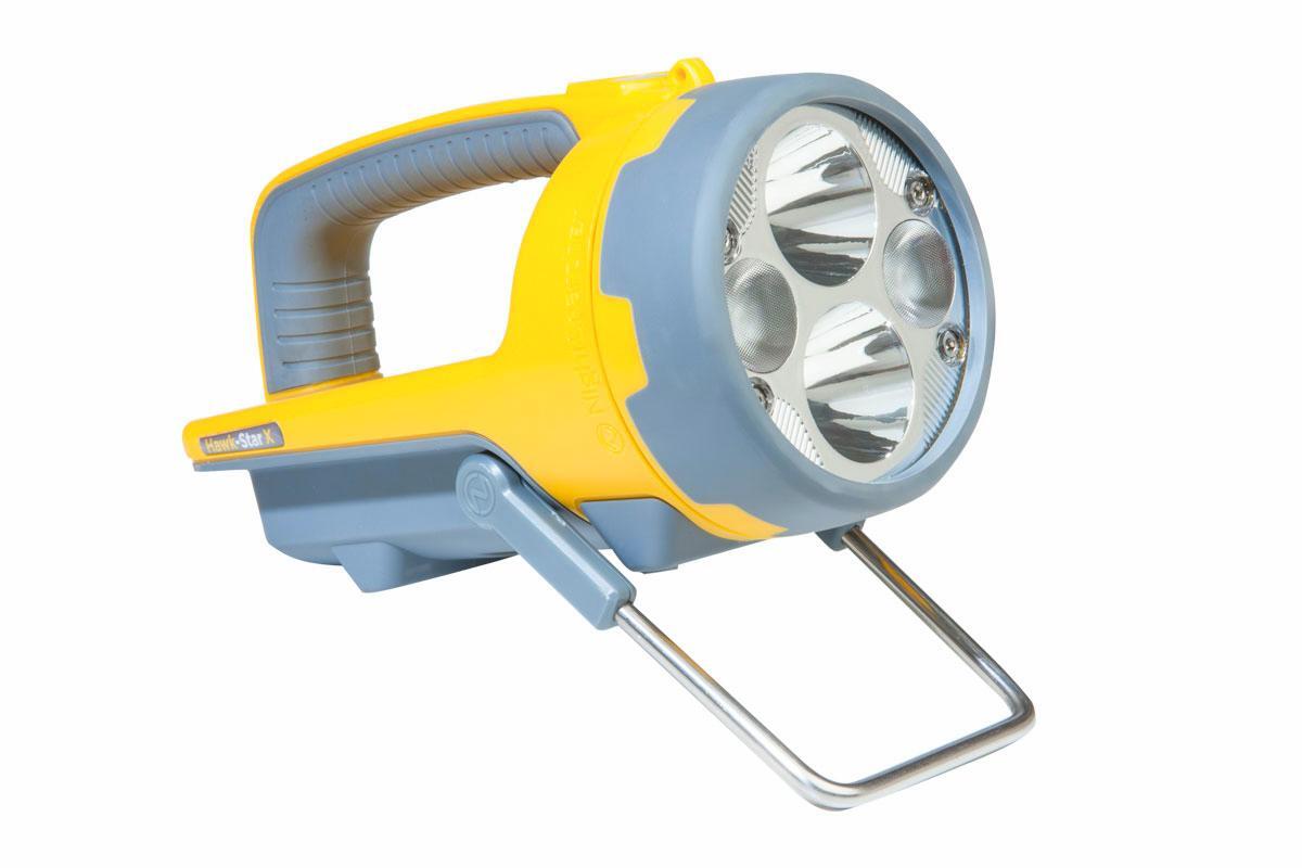 Proiector de mana de la NightSearcher, de tip searchlights cu o putere de pana la 4200 de lumeni ce functioneaza cu acumulator ce se poate incarca la orice vehicul ce furnizeaza 12v/24v sau de la reteaua de curent alternativ. Conceputa pentru a functiona in cele mai dure conditii, modelul Hawk Star este robust si solid, prelucrat cu precizie si este dotat cu un maner ce asigura o priza excelenta in mana. Proiectat pentru a fi utilizat in vehicule pentru servicii de urgenta. Autonomia poate ajunge pana la 28 ore.