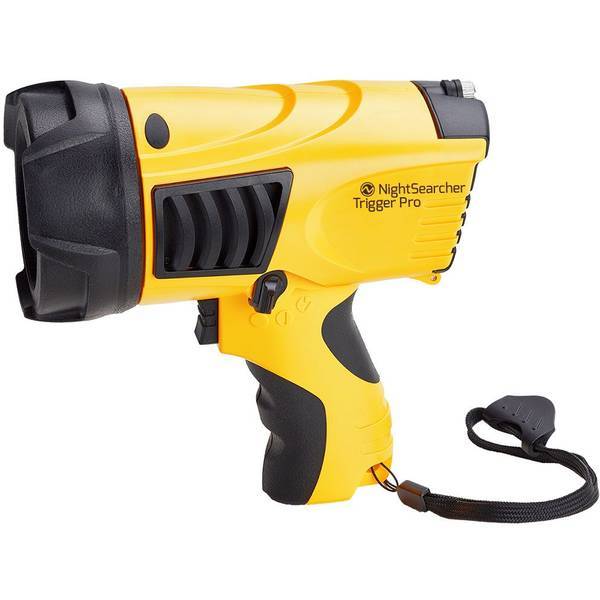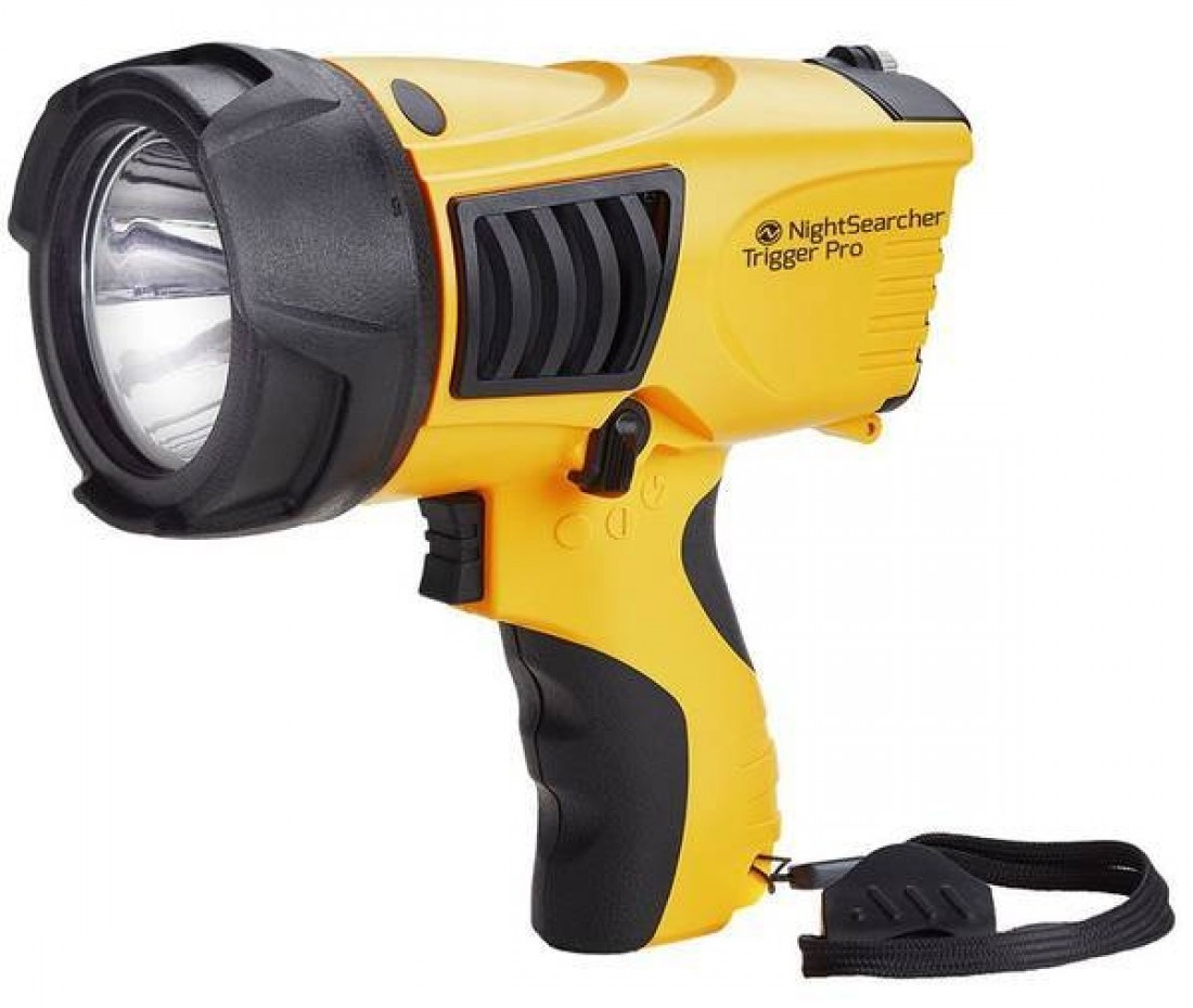 Lanterna de mana NightSearcher, de tip spotlight cu o putere de 1000 de lumeni ce functioneaza prin intermediul unui acumulator Li-Ion. Conceputa pentru a functiona in cele mai dure conditii, modelul Trigger Pro este robust si solid, prelucrat cu precizie si este dotat cu un maner ce asigura o priza excelenta. Cu acumulatorul Li-Ion autonomia poate ajunge pana la 15 ore.