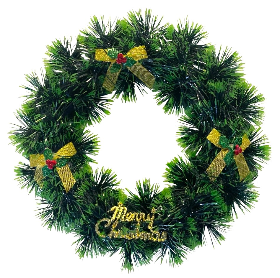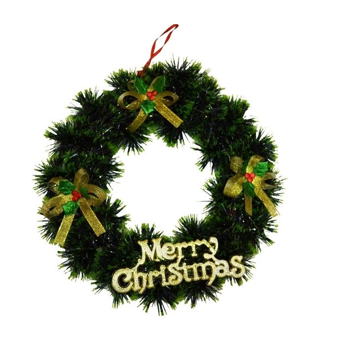 Aceasta coronita este o alegere inspirata pentru a va decora casa in preajma sarbatorilor de iarna. Este prevazuta cu fundite de culoare aurie cu accente de verde si rosu. Contine un mesaj specific sarbatorilor de iarna (Merry Christmas), pe suport de plastic.