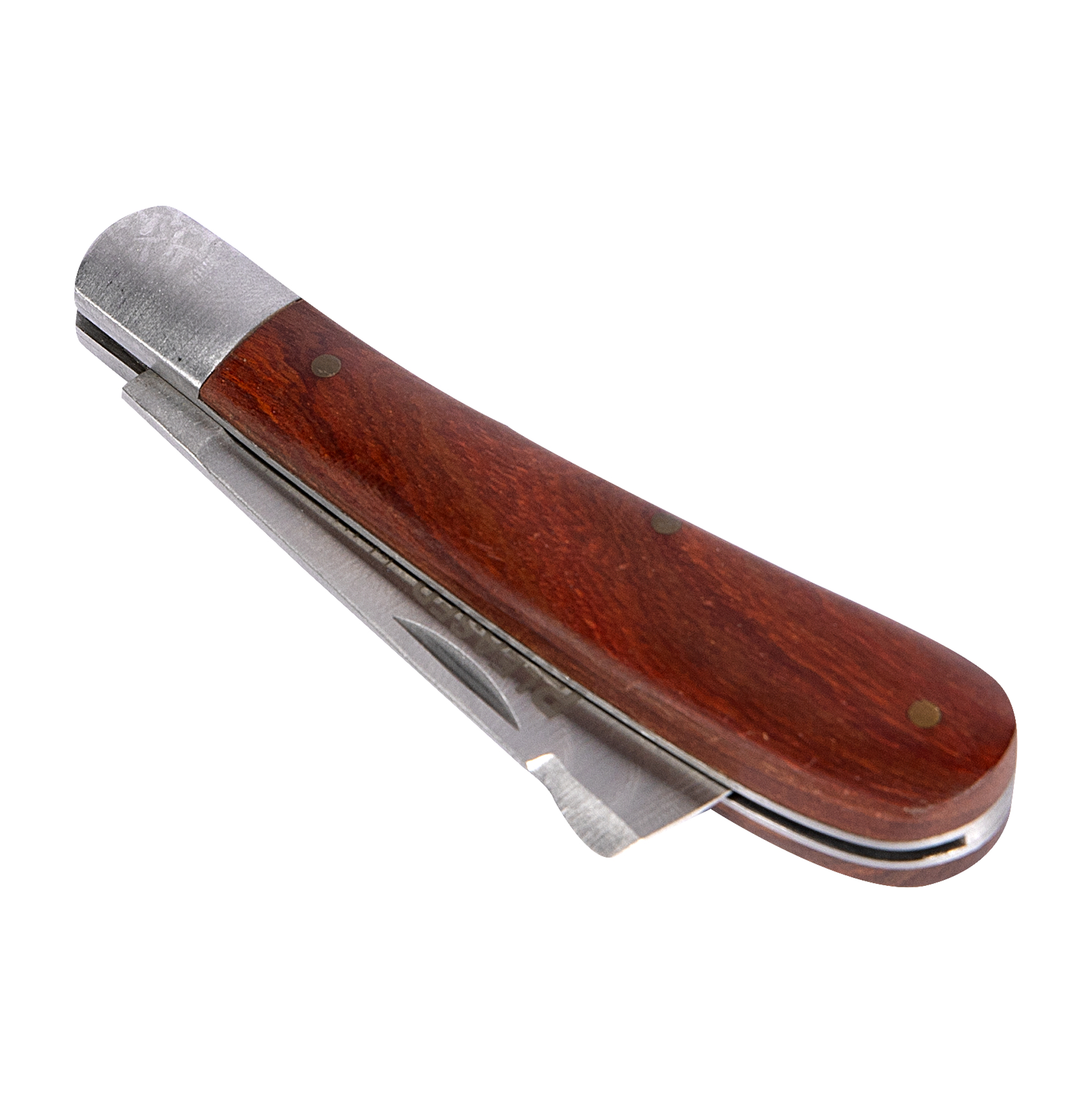 Lama ascutita cu otel inoxidabil de inalta calitate, maner confortabil cu lemn.