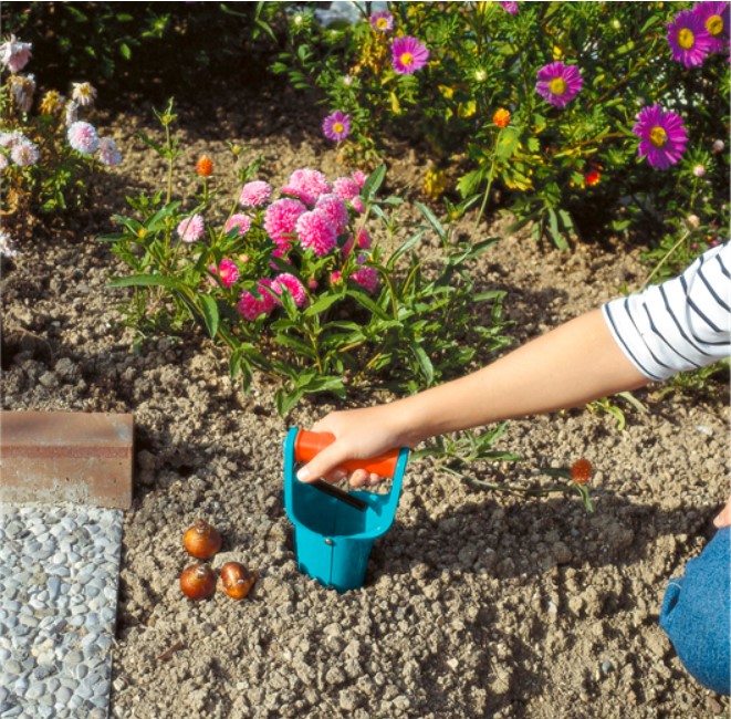Plantatorul de bulbi GARDENA este ideal pentru plantarea fără efort a bulbilor de flori. Cu declanșator automat pe mâner. Cu Scară/Tabelă de adâncime de plantare. Acoperirea Duroplast asigură o durată lungă de viață a produsului. Garanție 25 de ani.
