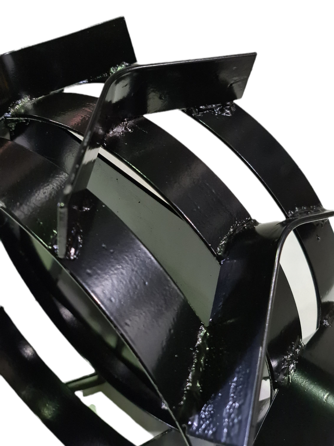 Constructie Solida: Rotile metalice sunt fabricate din materiale rezistente si durabile, pentru a rezista uzurii si conditiilor dure de lucru din agricultura. Acestea ofera o sustinere stabila si fiabila pentru motocultor in timpul utilizarii intensive.