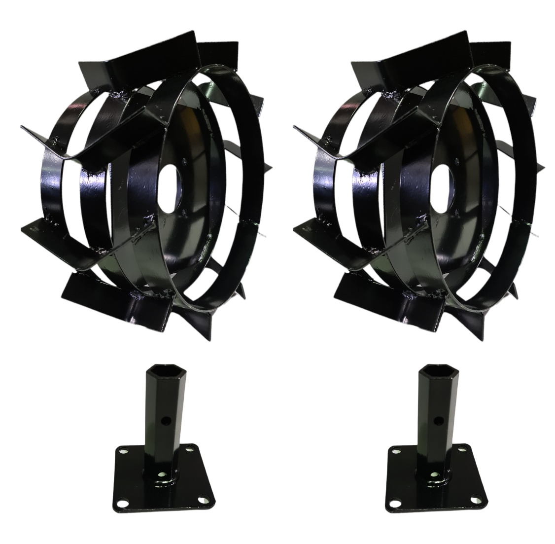 Mobilitate Imbunatatita: Setul de doua roti metalice imbunatateste mobilitatea motocultorului, permitandu-va sa navigati usor pe terenuri variate, inclusiv pe suprafete accidentate sau inclinate. Aceasta va ofera mai multa libertate si flexibilitate in lucrarile agricole si de gradinarit.