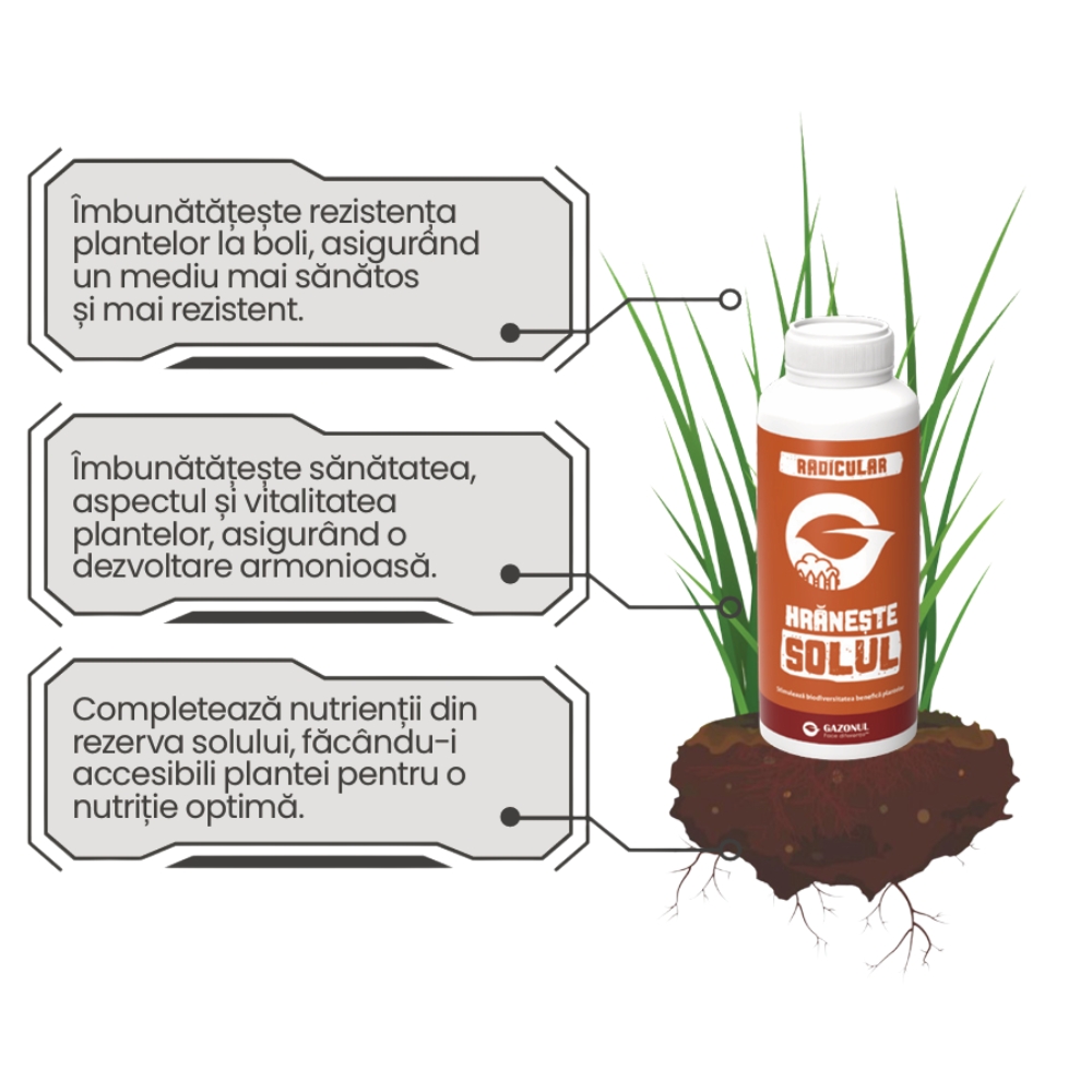 Fertilizant Radicular pentru Substrat Hraneste Solul, 0.25L, Gazonul