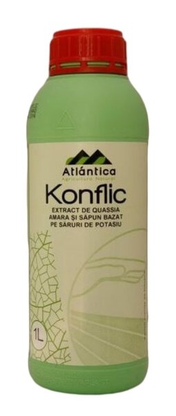 Konflic este un insecticid natural, in stare lichida, utilizat pentru controlul daunatorilor din culturile leguminoase, flori, pomi fructiferi si vita de vie. Fiind compus din extracte naturale, nivelul de reziduuri este 0 si nu este necesar un timp de pauza intre aplicarea tratamentului si recoltare.
