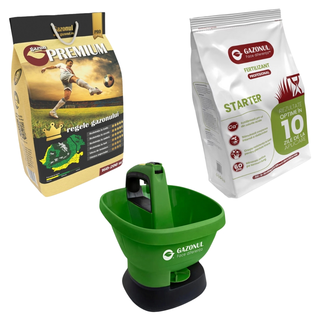 Pachet Seminte Premium 4kg, Ingrasamant Starter 6kg si Dispozitiv electric Easy-Drop, Gazonul