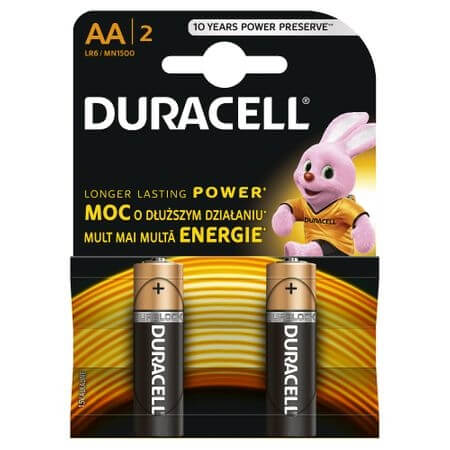 Baterii alcaline AA, R6, Duracell Basic, 1,5 V, blister 2 baterii