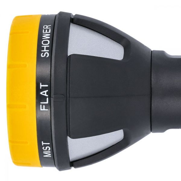 Aceasta duza de pulverizare robusta cu maner pistol are un cadran pentru 8 modele reglabile: centru ceata plat dus plin (jet) inmuiere jet si con pentru o varietate nesfarsita de sarcini de udare. Duza de pulverizare este construita din metal solid si are un invelis exterior moale cauciucat pentru a proteja duza si pentru a oferi o prindere confortabila si moale. Puteti controla cu usurinta puterea fluxului de apa cu degetul mare. Conectati-va la un furtun cu conectorul de furtun cu inchidere rapida de 1/2 inch si adaptor de robinet de 1/2 inch si 3/4 inch. Exista de asemenea un conector pentru furtun de oprire a apei de 1/2 inch – are o supapa interna care opreste fluxul de apa la deconectarea unui accesoriu reducand risipa de apa si stropirea accidentala.
