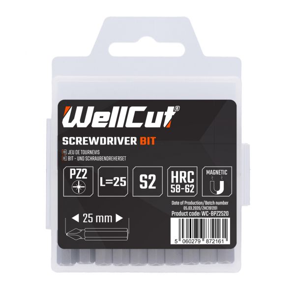 Biti PZ2 WellCut WC-BPZ25200, 20 bucati 25 mm set Profesional