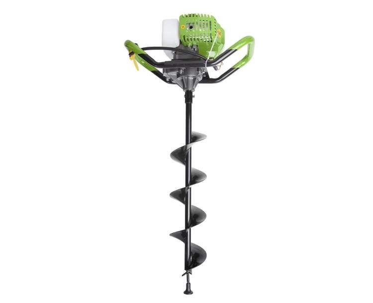 Pentru plantarea pomilor tineri puteti folosi si diametre mai mici, de 100 mm (nu se include in set). Motoburghiul poate fi purtat si manevrat usor de o singura persoana, cu gidonul cu doua manere. Forarea unei gauri verticale in sol este lejer de executat, ajustand acceleratia si efortul in functie de duritatea solului si a diametrului burghiului.