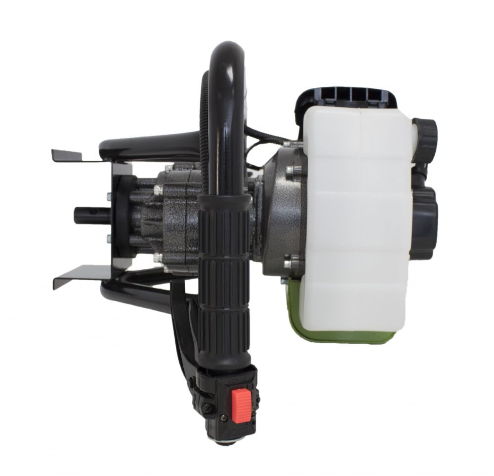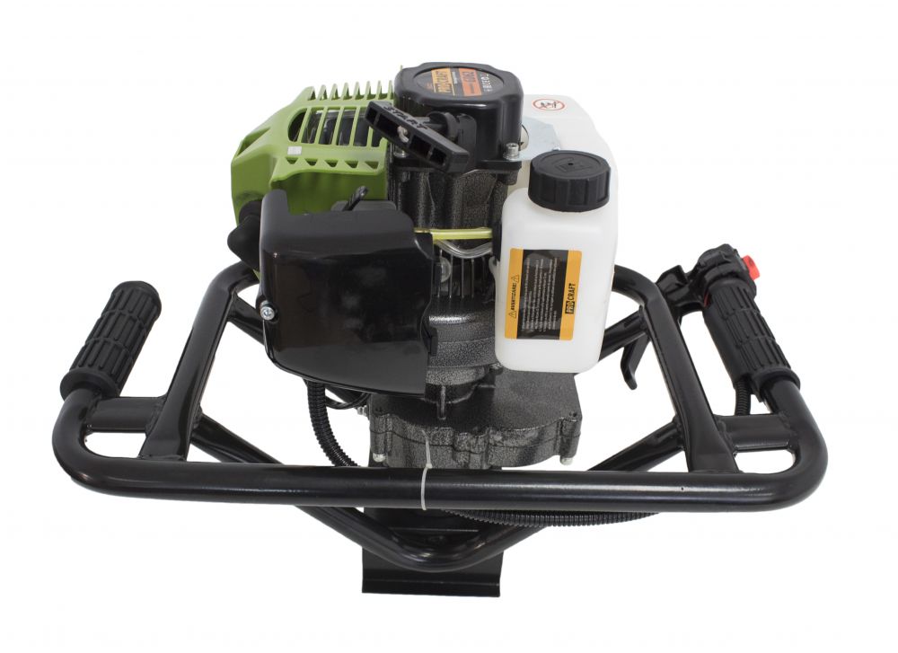 Pentru plantarea pomilor tineri puteti folosi si diametre mai mici, de 100 mm (nu se include in set). Motoburghiul poate fi purtat si manevrat usor de o singura persoana, cu gidonul cu doua manere. Forarea unei gauri verticale in sol este lejer de executat, ajustand acceleratia si efortul in functie de duritatea solului si a diametrului burghiului.