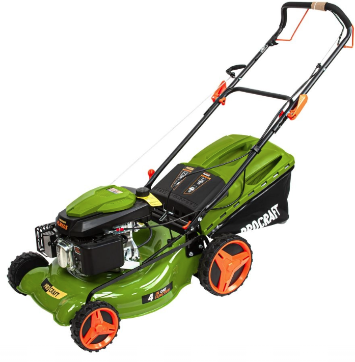 Masina de tuns gazonul pe benzina Procraft PLM 505 porneste rapid prin demaror cu sfoara este bine protejata in zona motorului are autopropulsie activata prin maneta si alte specificatii care o fac usor de utilizat si fiabila in lucru.