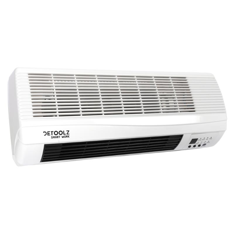 Aeroterma de perete Detoolz, 2KW, 2 trepte de putere, cu afisaj LED si termostat (DZ-EI1006-G01) este ideala pentru incaperi sau spatii mici cu dimensiuni de maxim 15mp.