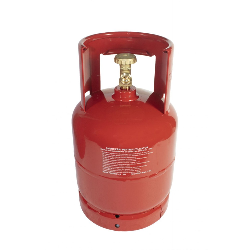 Butelie ELEFANT din Metal cu talpa si guler de protectie pentru conector. Capacitatea maxima de alimentare este de 7 L, sau 3 kG de gaz Propan,Butan. Greutatea buteliei goale atinge 5 kg. Produsul este testat sub presiune de 30 bari, conform standardelor internationale si indeplineste criteriile cerute de ISCIR.