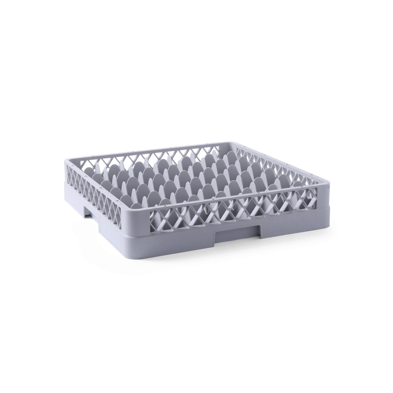 Cos pahare pentru masina de spalat pahare Hendi Polipropilena 49 compartmente 500x500x(H)104 mm Gri – Structura permite un debit maxim de apa intre vase, in toate directiile – Spatiile dintre separatori creeaza o inclinare optima pentru o spalare eficientaSpecificatii
