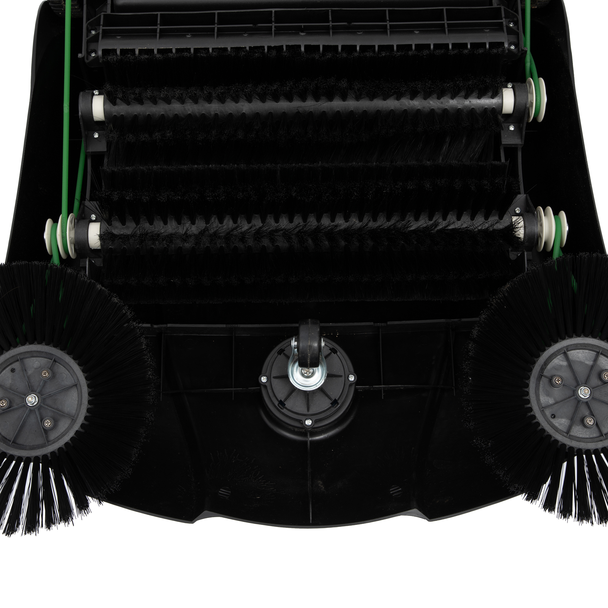 Masina de maturat manuala 800mm, 30L, MS80-A dispune de un sistem de actionare cu perii pe ambele laturi ce directioneaza murdaria catre peria centrala de unde este colectata in rezervorul detasabil.