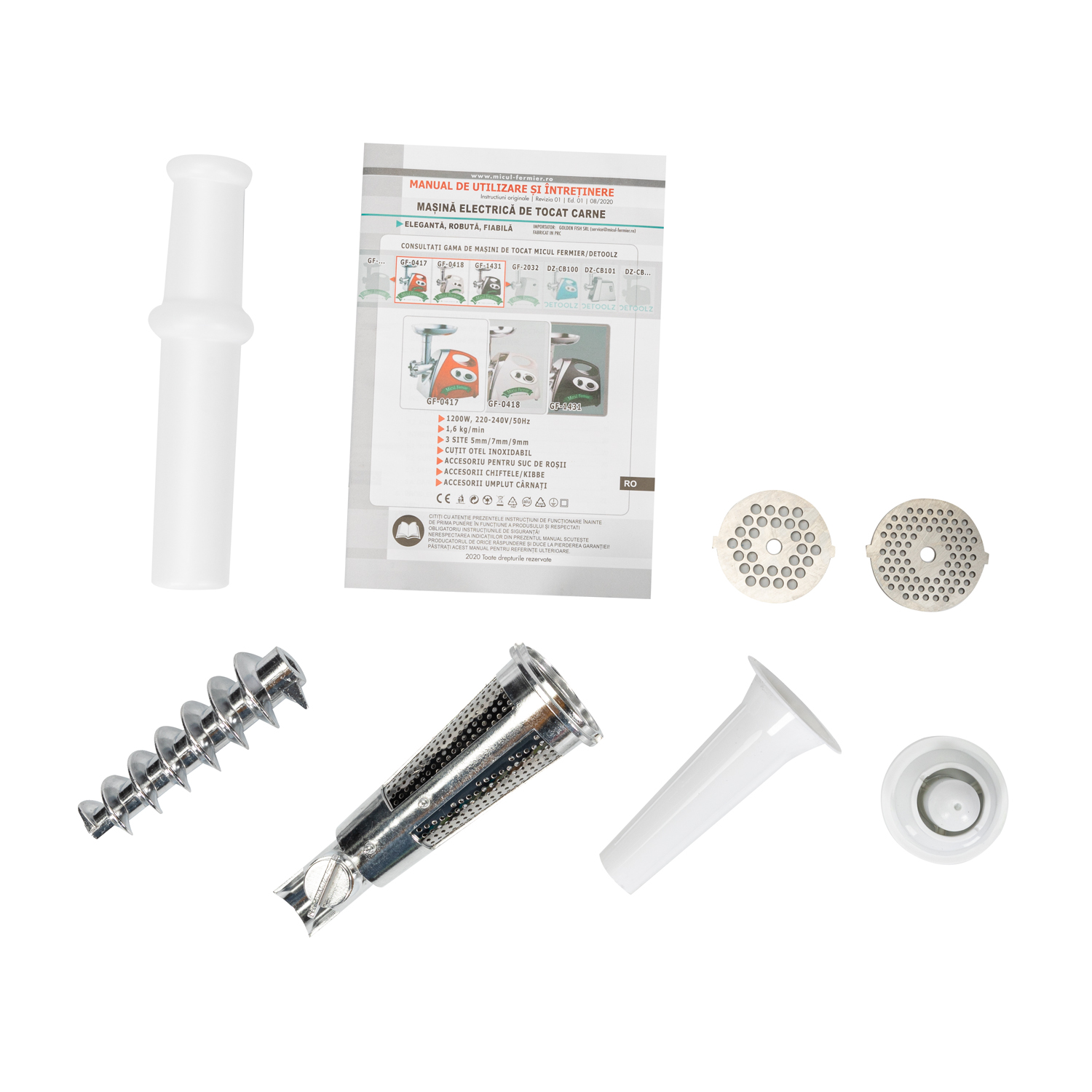 Continut colet masina electrica de tocat carne NEAGRA ,1200W JIA, Micul Fermier GF-1431: