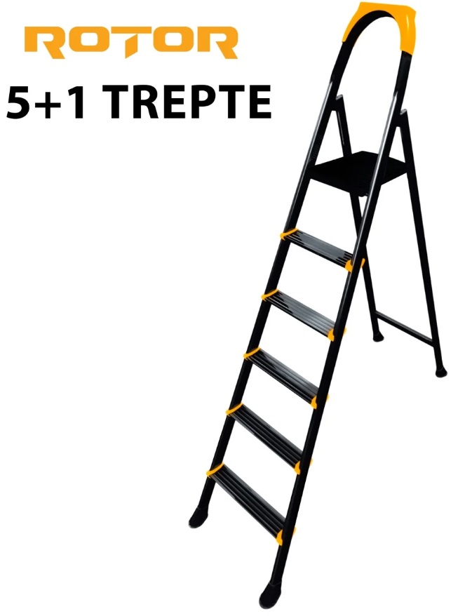Scara metalică pliabilă ROTOR 5+1 trepte oferă siguranță și stabilitate în orice activitate la înălțime, fiind un instrument indispensabil pentru lucrări eficiente și confortabile.