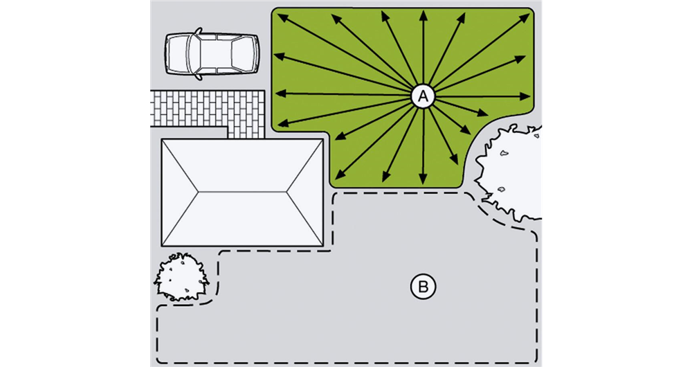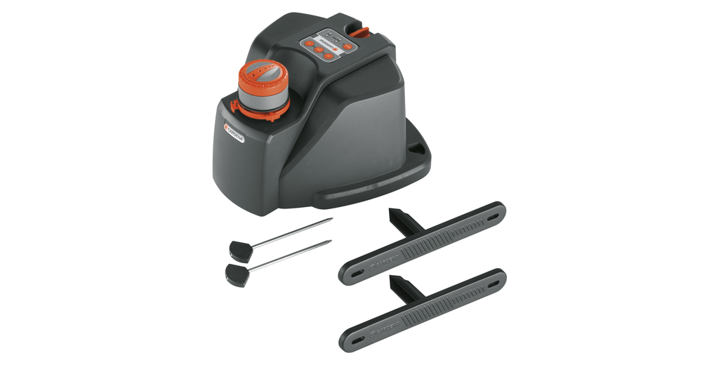 Aspersorul inovator AquaContour automat pentru irigarea suprafetelor mari Comfort GARDENA este modelul convenabil pentru irigarea oricarei suprafete de gradina de pana la 350 mp. Datorita intervalului cu programare variabila, ajunge usor in orice colt de gradina. Acest aspersor pentru suprafete mari este deosebit de usor de programat; pot fi programate si memorate, usor si oricand, doua contururi diferite de gradina, de ex. in fata si in spatele casei. In functie de program, pot fi memorate individual pana la 50 de puncte-cheie de contur. Aspersorul pentru irigarea suprafetelor mari are o tastatura cu membrana rezistenta la murdarie, cu ghidare clara a operatorului. Aspersorul poate fi programat simplu. Duzele de plastic moale de la capul aspersorului garanteaza distributia uniforma a apei. Sectorul de irigare poate fi selectat individual, intre 25° si 360°, cu ajutorul inelelor de reglare. Intervalul aspersorului pentru irigarea suprafetelor mari poate fi memorat, intre 2,5 si 9 m avand o presiune de functionare de 2 bari, iar la 10,5 m avand presiunea de functionare de 4 bari. Cele doua marcatoare de sol sunt practice. Ele permit fixarea sigura si precisa a aspersorului in suprafetele de irigare programate. Aspersorul pentru irigarea suprafetelor mari este dotat si cu doi tarusi. Acestia asigura fixarea sigura in iarba a aspersorului. Aspersorul AquaContour automat pentru irigarea suprafetelor mari Comfort GARDENA iriga toate colturile gradinii.