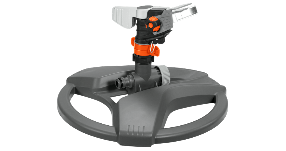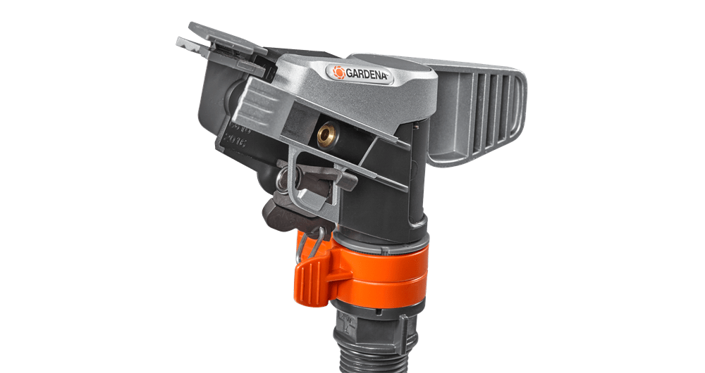 Aspersorul pulsator partial sau total circular iriga suprafete mari, fara efort. Este fabricat dintr-o combinatie robusta de metal si plastic. Acest lucru ii confera capului de aspersor o stabilitate sporita. Cu ajutorul inelelor de reglare, puteti seta cu usurinta sectorul care va fi udat, selectand o raza de actiune de la 25° la 360°. Sectorul selectat poate fi vizualizat oricand datorita acestor inele de reglare. Duza din alama de inalta precizie asigura o distribuire precisa a apei. Puteti seta raza de actiune cu ajutorul butonului rotativ mare, usor de utilizat. Aceasta poate fi setata de la 5 m la maxim 12,5 m. Poate fi irigata o suprafata de la 75 m la maxim 490 mp. Filetul mama/tata este insurubat pe capul aspersorului si are un diametru de 21 mm (G 1/2). Aspersorul este montat pe un tarus metalic. Acesta are trei insertii metalice care ii confera robustete sporita. Sabotul de plastic garanteaza stabilitate sporita. Aspersorul este dotat cu conectorul de sistem GARDENA si cu dopul de inchidere. Il puteti utiliza imediat. Cu ajutorul conectorului de robinet GARDENA (nr. articol 901), se pot conecta mai multe aspersoare. Suprafetele mai mari pot fi irigate fara probleme.Specificatii