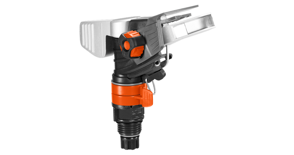Capul pulsator de aspersor partial sau total circular Premium GARDENA poate fi usor insurubat pe un trepied sau pe o conducta de apa. Este fabricat dintr-o combinatie robusta de metal si plastic. Acest lucru ii confera capului de aspersor o stabilitate sporita. Cu ajutorul inelelor de reglare, puteti seta cu usurinta sectorul care va fi udat, selectand o raza de actiune de la 25° la 360°. Sectorul selectat poate fi vizualizat oricand datorita acestor inele de reglare. Duza din alama de inalta precizie asigura o distribuire precisa a apei. Puteti seta raza de actiune cu ajutorul butonului rotativ mare, usor de utilizat. Aceasta poate fi setata de la 5 m la maxim 12,5 m. Poate fi irigata o suprafata de la 75 mp la maxim 490 mp. Filetul mama/tata cu care este insurubat capul aspersorului are un diametru de 21 mm (G 1/2). Irigarea usoara si directionata a suprafetelor mari, cu ajutorul capului pulsator de aspersor partial sau total circular Premium GARDENA.Specificatii