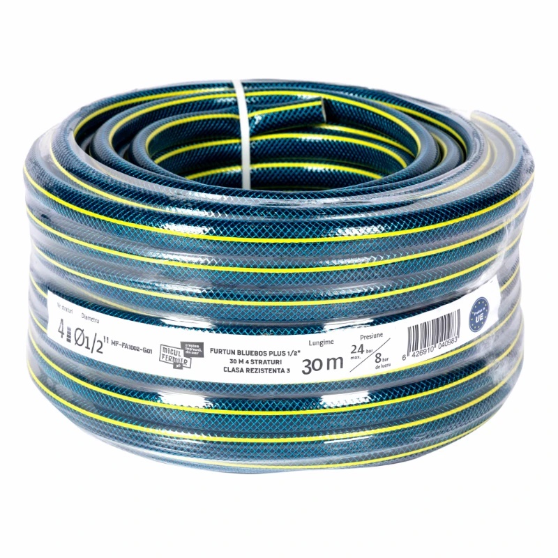 Furtunul cu insertie din gama Micul Fermier este un acesoriu indispensabil in gospodarie, folosit atat pentru transportul apei pe distante mai mari cat si