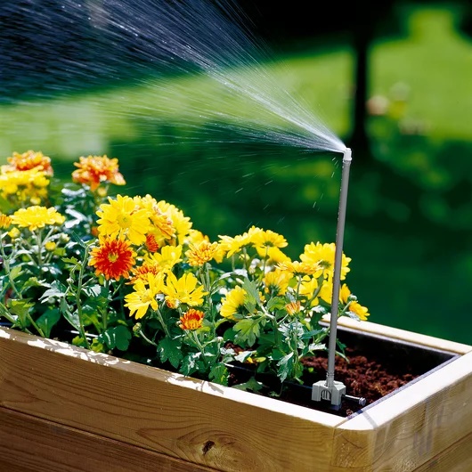 Micro aspersorul Solo Gardena 1372 este recomandat pentru suprafete lungi inguste atunci cand este folosit impreuna cu Micro-aspersorul Duo.