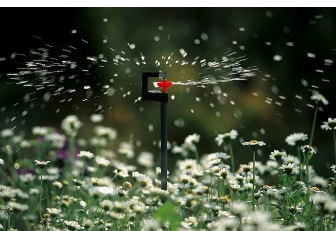 Cu microaspersorul rotativ 360° Gardena, ca parte a sistemului de micro irigatii Micro-Drip GARDENA, este posibila irigarea cu pulverizare fina a straturilor.