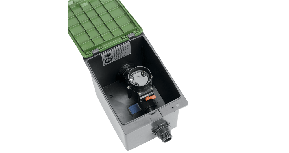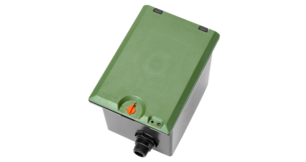 In cutia pentru electrovalva V1 GARDENA poate fi instalata in subteran o electrovalva de irigare de 24 V (nr. articol 1278) sau o electrovalva de irigare de 9 V (nr. articol 1251). Conexiunea telescopica prin insurubare usureaza montarea si demontarea electrovalvelor. Capacul poate fi blocat pentru siguranta copiilor. Cutia pentru electrovalva V1 GARDENA are filet exterior de 1".Specificatii