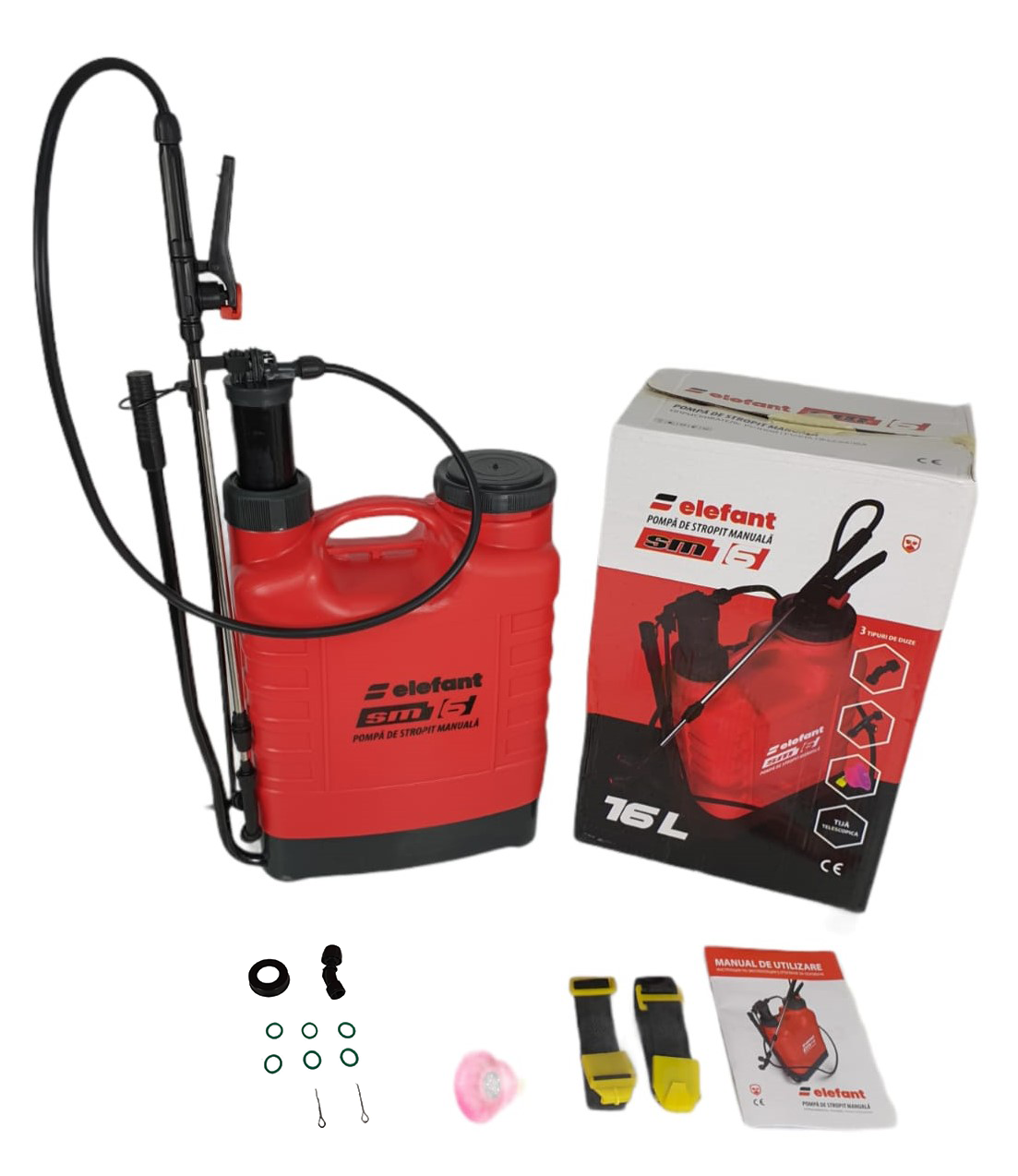 Pompa de stropit manuala Elefant SM16L serveste multor altor nevoi pe langa stropirea culturilor agricole si plantelor arborifere in tratamentul cu pesticide. Este usor de folosit, comod de carat in spate si manevrat si nu necesita intretinere deosebita.