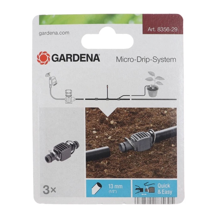 Conectorul Gardena 8356, ca element al sistemului Micro-Drip Gardena, ajuta la extinderea conductei de conectare.