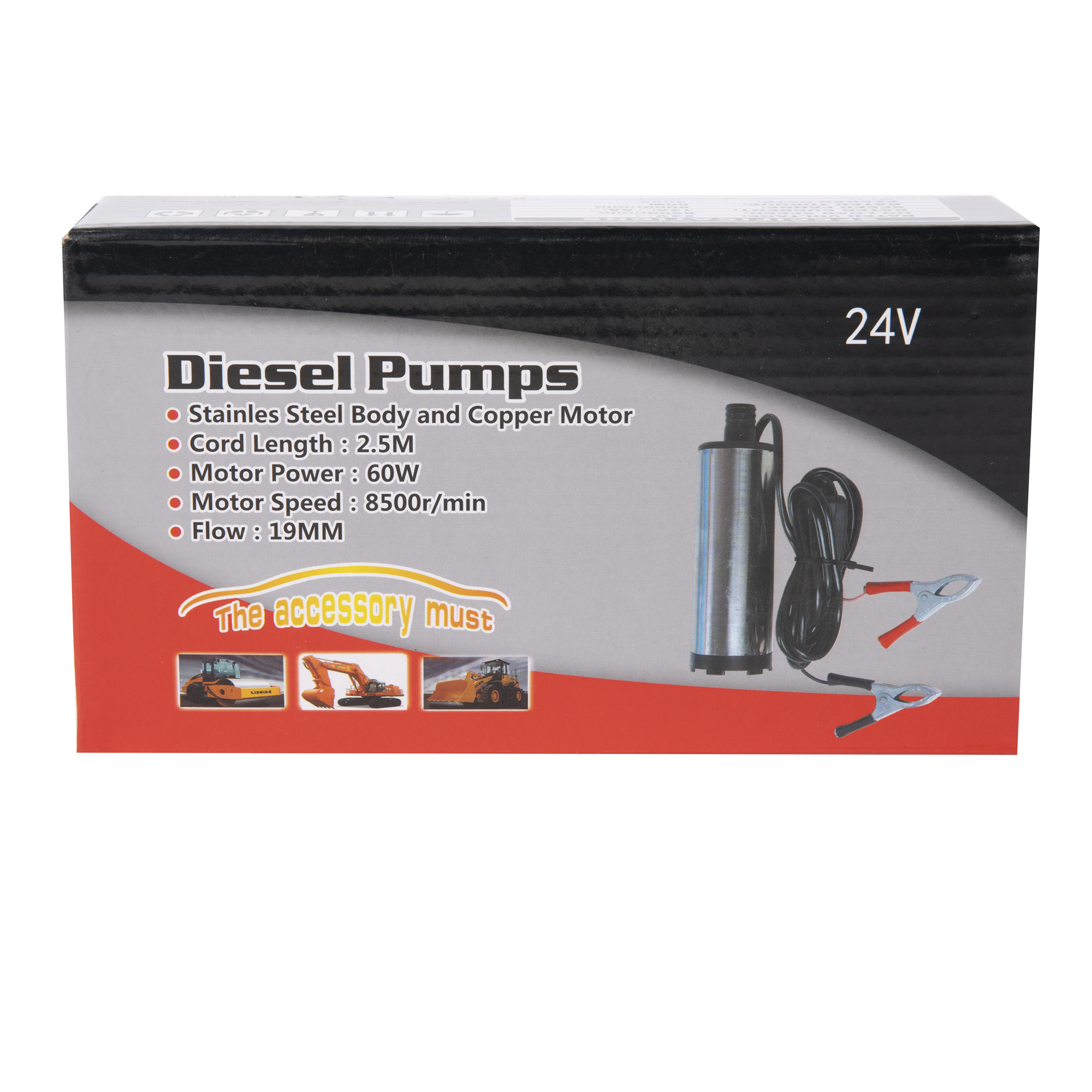 •Usor de folosit - se alimenteaza pompa la bornele bateriei (24V), se introduce pompa in fluid, furtunul in recipient si se actioneaza butonul de pornire pentru a extrage lichidul.