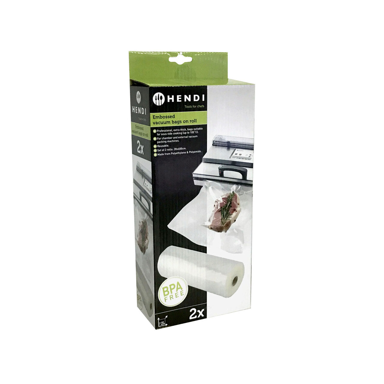Aparatul de vidat Hendi este un accesoriu in bucatarie perfect, cu un design elegant si o utilizare usoara. El este la indemana pentru pastrarea unei varietati de alimente - alimente semipreparate, peste si carne, care nu lasa miros in frigider.
