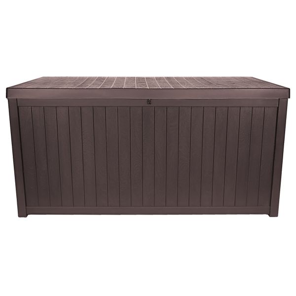 Lada de depozitare de exterior TOUGH MASTER® TM-SBW43H de 430 litri este solutia excelenta pentru pastrarea elementelor esentiale in aer liber in conditii de siguranta uscat si ordonat. Acest produs robust si durabil este fabricat din polipropilena impermeabila rezistenta la intemperii astfel incat sa nu rugineasca sau sa se dezintegreze din cauza umezelii. Are de asemenea o textura placuta estetic a suprafetei ce imita lemnul intr-o nuanta atractiva de maro inchis – care este usor de pastrat curat.