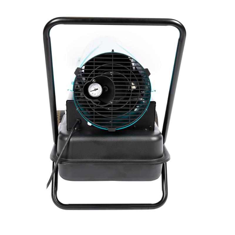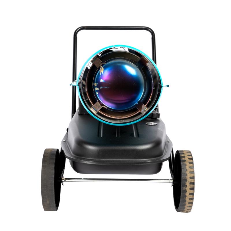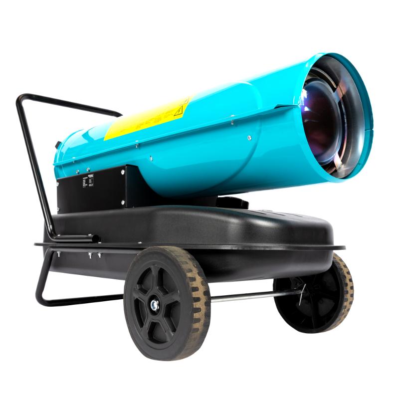 Tunul de caldura pe motorina Detoolz, 30kW, 35L, cu roti de transport DZ-EI1005-G01 se utilizeaza pentru incalzirea spatiilor de productie sau spatiilor industriale. Incalzitoare de motorina cu ardere directa sunt echipamente de incalzire extrem de eficiente, care furnizează volume mari de caldura instantanee. Acestea sunt cele mai bune pentru zone deschise sau bine ventilate, cum ar fi fabrici, depozite sau santiere de constructii. Sunt foarte eficiente si robuste, functionand permanent in conditii de siguranta. Principiul de functionare este prezentat in schema de mai jos: