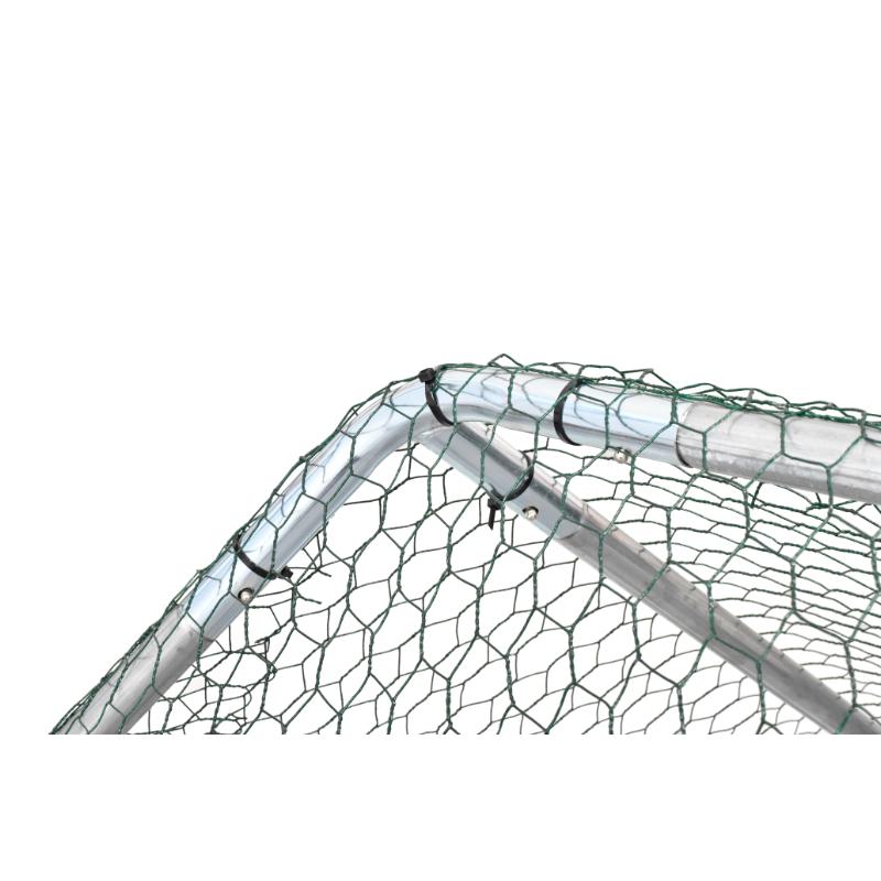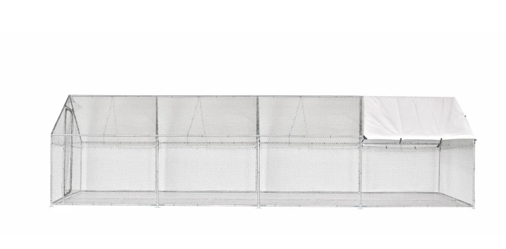 Cotetul de pasari 3x8x2m, Micul Fermier este fabricat din otel galvanizat de inalta calitate, cu un acoperis din polietilena 100%, rezistent la apa si raze UV, oferind protectie impotriva soarelui, ploii, zapezii si altor conditii meteorologice nefavorabile. Peretii laterali din sarma ai cotetului ajuta la prevenirea neplacerilor sau a accidentelor, permitand in acelasi timp circulatia aerului. Poarta este echipata cu un sistem de blocare, pentru a va mentine animalele in siguranta sporita. Produsul este usor de asamblat.