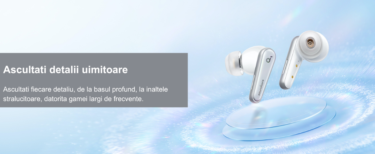 acusticSoundCore by Anker. Gama sa larga de frecvente permite ca fiecare parte a melodiei sa se remarce pentru o ascultare bogata in detalii.